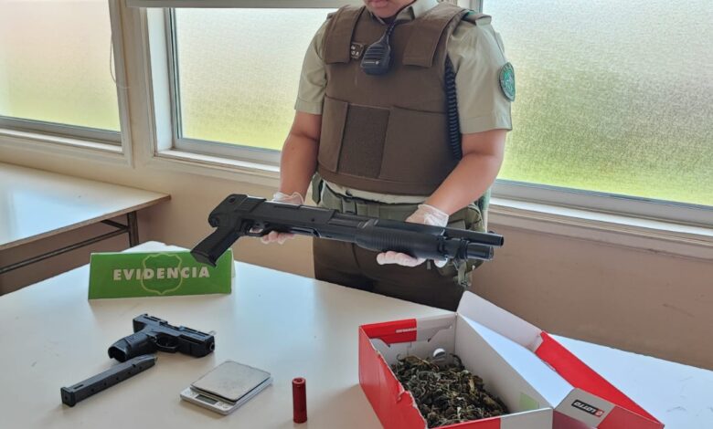 Carabineros de la Sección Centauro detuvo en #Paillaco a adulto que fue sorprendido en vía pública con 1 armamento,manteniendo en su domicilio de Psj Giacaman 1 escopeta recortada con munición,marihuana y balanza.Imputado registraba orden de captura pendiente para cumplir condena.
