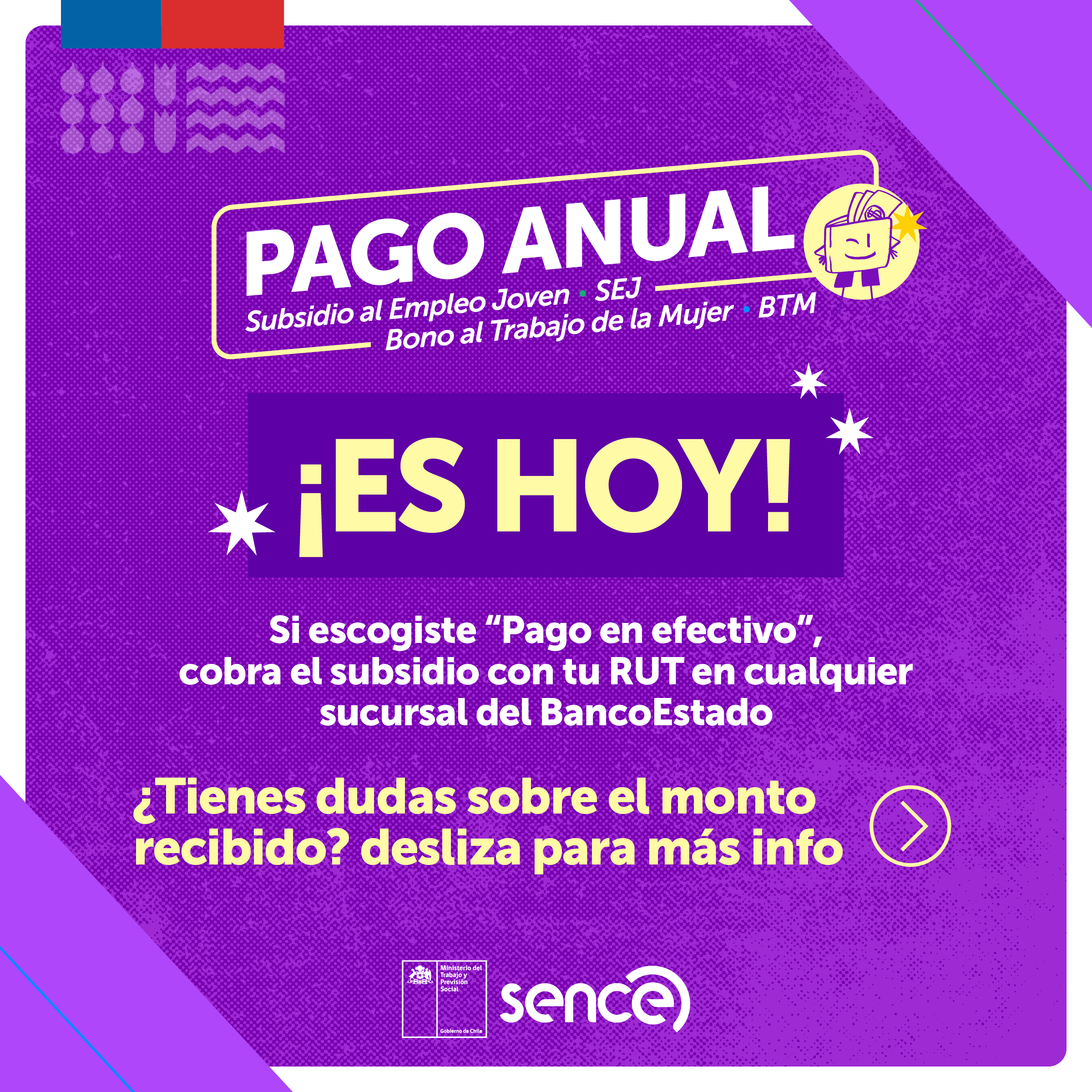 Hoy comenzó el pago anual del Bono al Trabajo de la Mujer (BTM) y Subsidio al Empleo Joven (SEJ), aportes monetarios de transferencia directa que mejoran los ingresos de las personas trabajadoras, dependientes e independientes, pertenecientes al 40% más vulnerable y también a sus empleadores.
