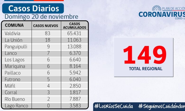 REPORTE] La SEREMI de Salud, informó que hoy se reportaron 149 nuevos casos de COVID-19, a la fecha, hay 271 casos activos, de los cuales 151 corresponden a la comuna de #Valdiviacl y 24 a la comuna de #Lanco