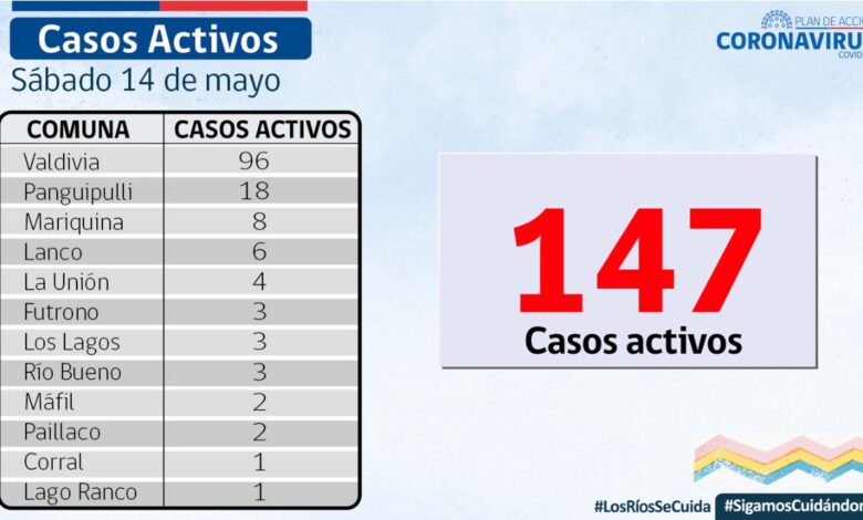 A la fecha, hay 147 casos activos, de los cuales 96 corresponden a la comuna de Valdivia y 18 a la comuna de Panguipulli.