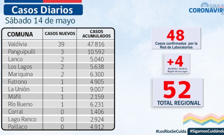 REPORTE] El SEREMI de Salud, Dr.José Llambías, informó que hoy se reportaron 52 nuevos casos de COVID-19 en Los Ríos.