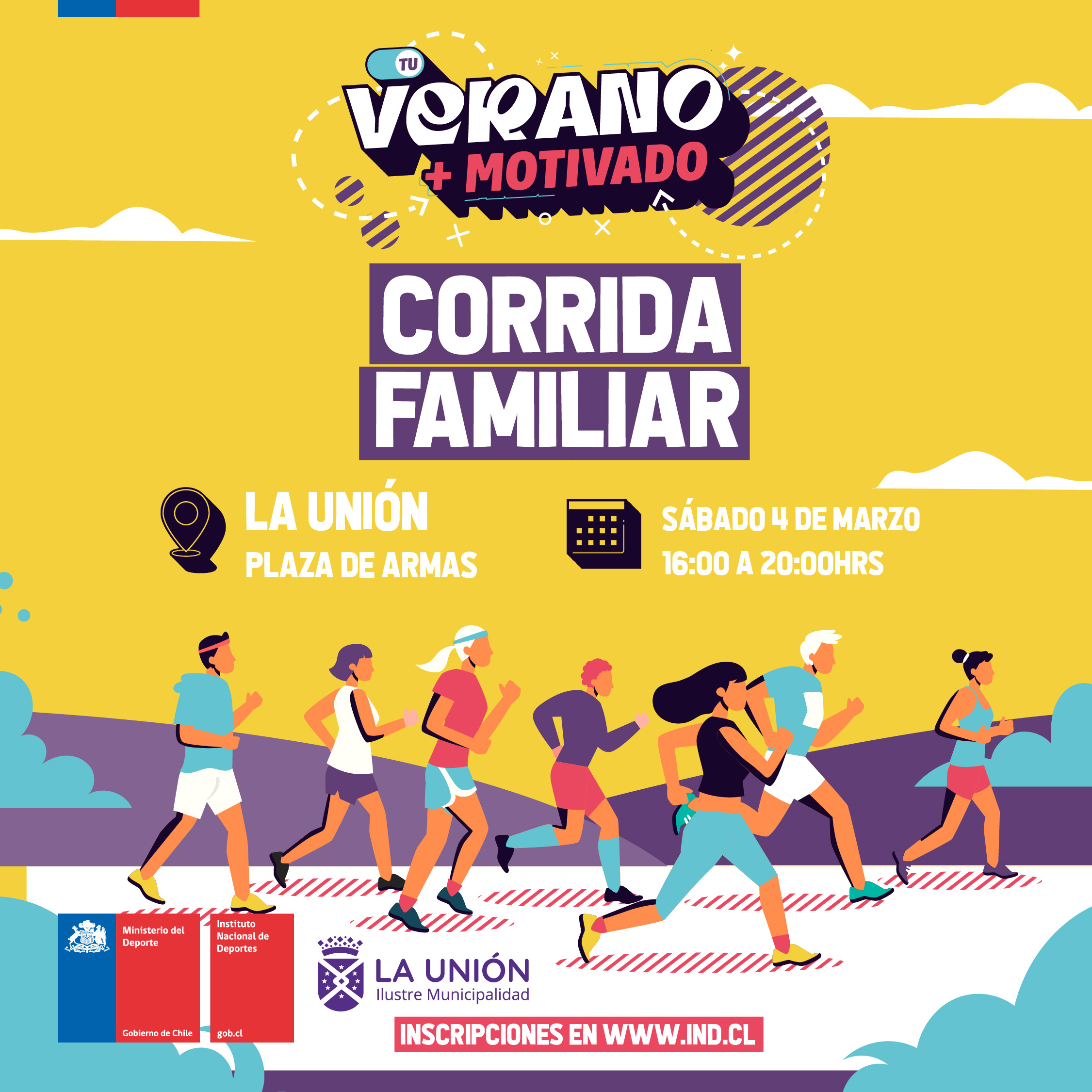 El ciclo de actividades estivales finaliza este sábado, 4 de marzo, con una corrida familiar que contará con dos distancias: 2.5 km y 5 km, con largada desde la Plaza de la Concordia a las 18:30 horas. El movimiento, sin embargo, comenzará desde temprano con la instalación de un punto de inscripción presencial y a las 16:30 horas será la entrega de poleras a los primeros inscritos en presentarse.