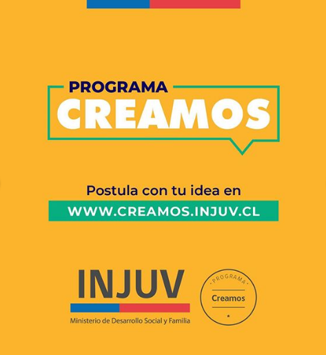 Con el objetivo de fomentar la participación de las y los jóvenes y de entregarles las herramientas para que generen los cambios que sus entornos necesitan, el Instituto Nacional de la Juventud (INJUV) lanza su convocatoria para el programa Creamos, un espacio dirigido a jóvenes que se motiven para generar cambios a pequeña o mediana escala proponiendo ideas innovadoras para problemas que afecten a una comunidad.