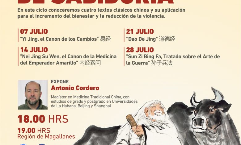 Es así como el miércoles 7 el tema será «Yi Jing, el Canon de los Cambios» o “I Ching (Libro de las Mutaciones)”; el miércoles 14 será el turno de «Nei Jing Su Wen, el Canon de la Medicina del Emperador Amarillo», que se reconoce como la fuente de la doctrina filosófica y práctica de la medicina tradicional china; para el 21 de julio se hablará sobre el “Dao De Jing» (también conocido en occidente como Tao Te King), que sienta las bases del daoísmo (taoísmo) sapiencial o filosófico; para culminar con el mencionado «Sun Zi Bing Fa».