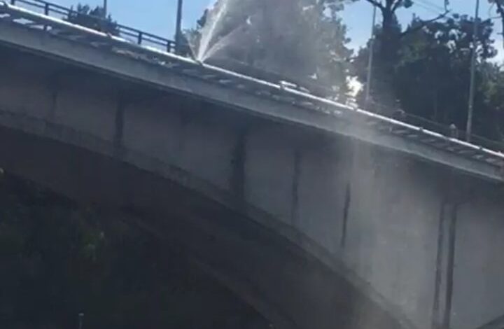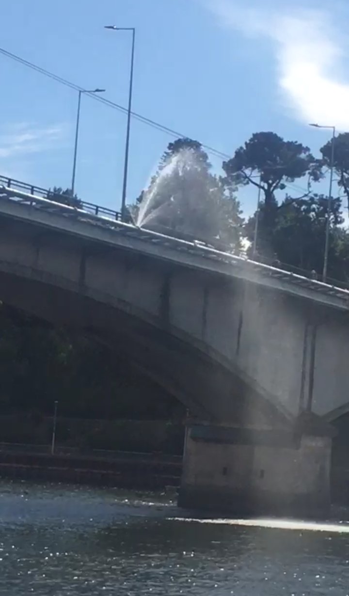La manipulación de tuercas por parte de terceros habría sido la causa de una fuga de agua potable que por breves instantes se hizo visible en el costado norte del Puente Pedro de Valdivia.
