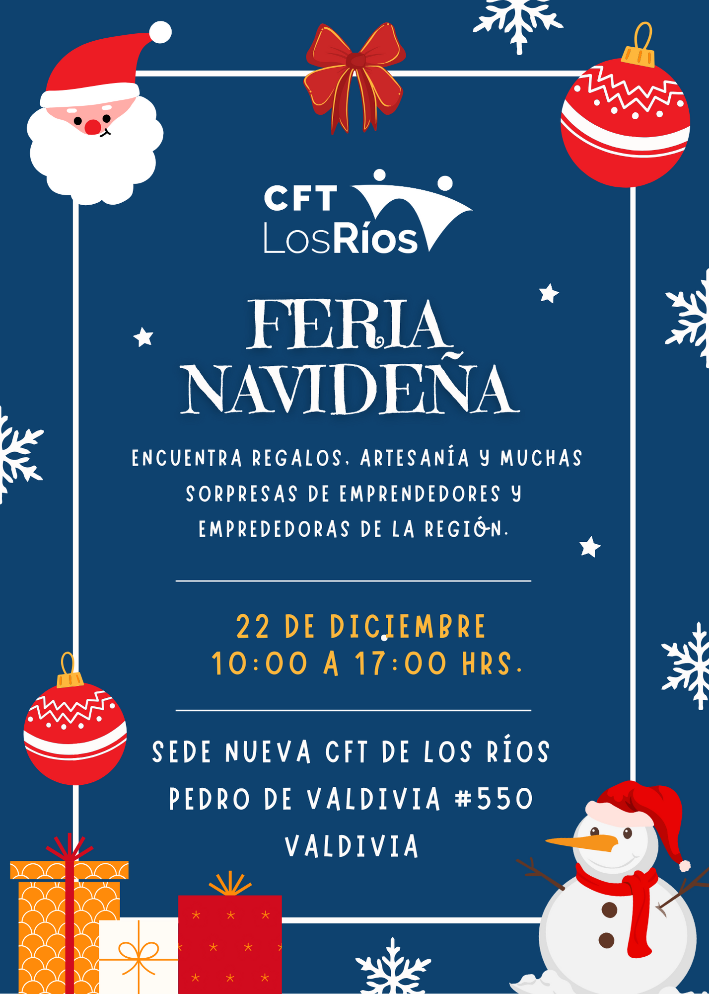 A pocos días de festejarse la Navidad, aún quedan cupos disponibles para ser parte de la Primera Feria Navideña del CFT de Los Ríos en su sede Valdivia. El evento es organizado por esta casa de estudios como una forma de apoyar el emprendimiento y ofrecer variados productos para regalar en estas festividades.