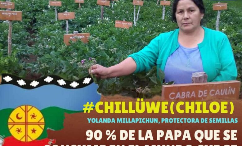 Por lo anterior, lo que representa Yolanda Millapichun que, desde la Isla Lemuy ubicada tras los fiordos de la actual ciudad de Castro en la Isla Grande de Chillüwe, cobra una tremenda importancia su rol como mapunche, la l’amuen en su relación tierra, entorno y gente, participa en una actividad de alta responsabilidad como guardadora de semillas donde elige las semillas de poñi(papas), las introduce a la tierra con constantes observaciones en su proceso y luego va compartiendo mediante la práctica del Trafkintu o chauke su reproducción en la población que vive en las tierras bonitas del sur en Wallmapu.
