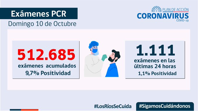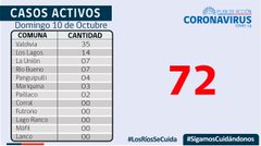 La Unión registra 3 casos nuevos de Covid-19, en los Ríos hay 72 casos activos.