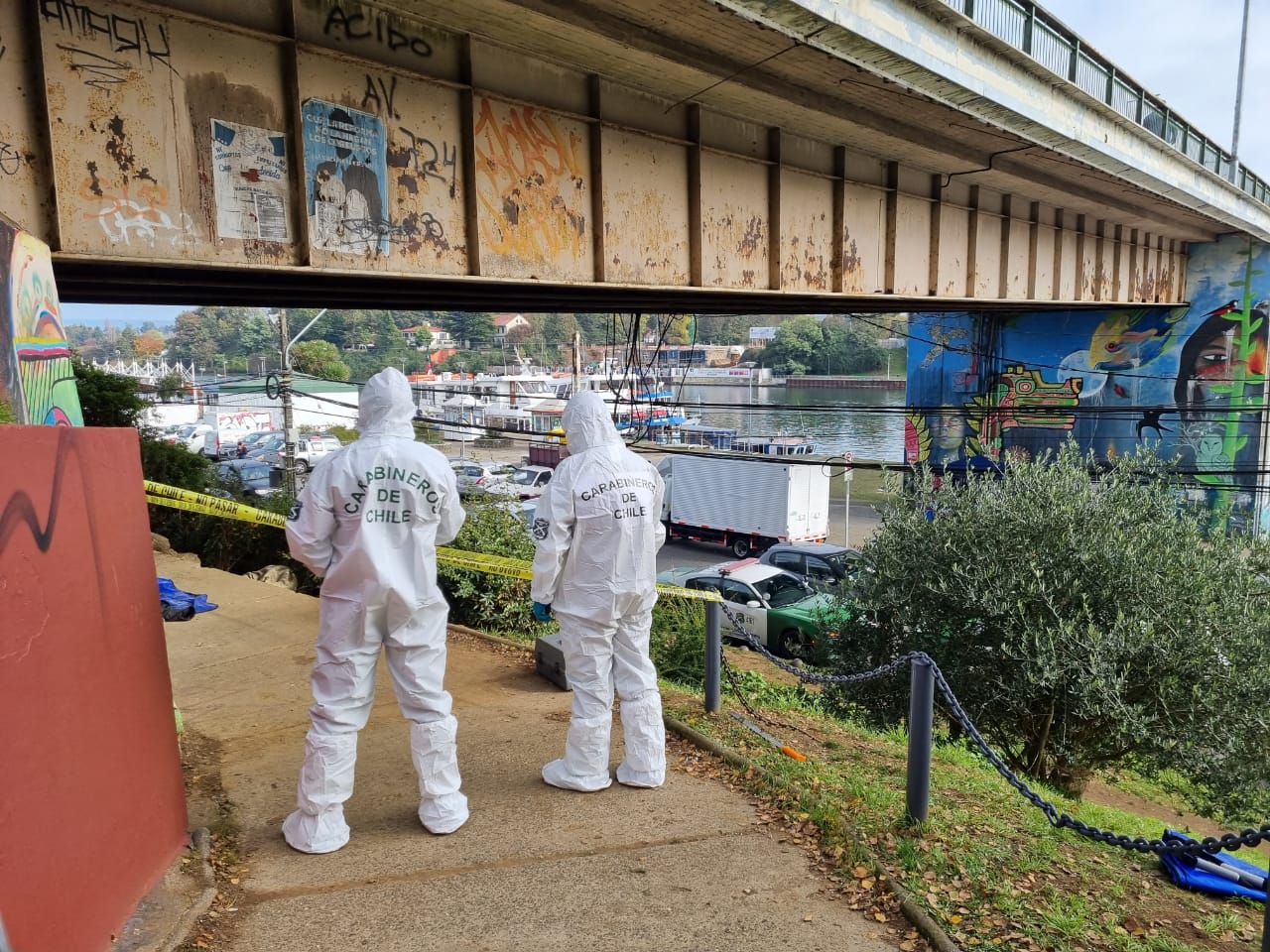 Labocar de Carabineros investiga muerte de una persona bajo el Puente Pedro de Valdivia.