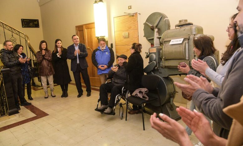 En el marco del aniversario número 87 del Teatro Regional Cervantes se efectuó una emotiva jornada de reconocimiento a Joaquín Jiménez, uno de los proyeccionistas más antiguos del Cine Cervantes, quien desempeñara funciones en dicho lugar por más de 40 años. Desde hoy en adelante, la Sala Técnica, ubicada en el segundo piso del establecimiento de calle Chacabuco, pasará a llamarse “Sala Joaquín Eleodoro Jiménez Mancilla”, en agradecimiento por su dedicación y profesionalismo. Precisamente, en ese mismo lugar, Jiménez, se encargó durante décadas de proyectar a las audiencias los clásicos cinematográficos que se exhibieron en el Cervantes, utilizando las antiguas máquinas que hasta el día de hoy se conservan como reliquias del pasado.