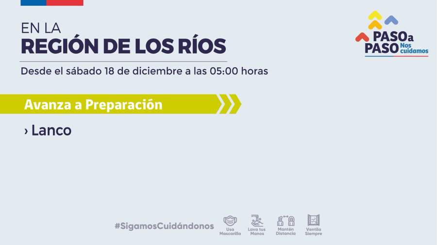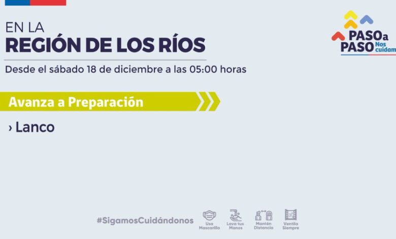 La comuna de Lanco avanza a Preparación y mantener las medidas de autocuidado y respetar los aforos.