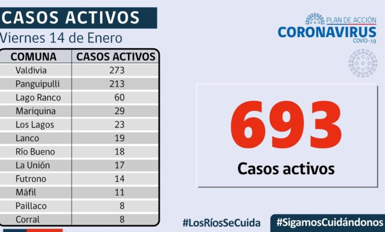 De los 194 casos confirmados por residencia en Los Ríos, 140 corresponden a casos secundarios, 23 están en investigación, 30 aún están sin trazabilidad y 1 caso es importado. En tanto, a la fecha, la región presenta 55.539 casos acumulados, de los cuales 693 corresponden a casos activos, 54.149 a personas recuperadas y 697 a fallecidos.