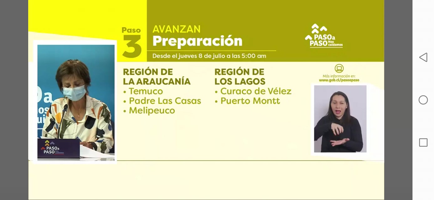 En el paso a paso la Region de los Rios se mantiene sin cambios, en este sentido desde este Jueves el 08 de Julio a las 5am pasan a Preparación la Region de la Aracaunia Temuco , Padre las casas, Melipeuco.