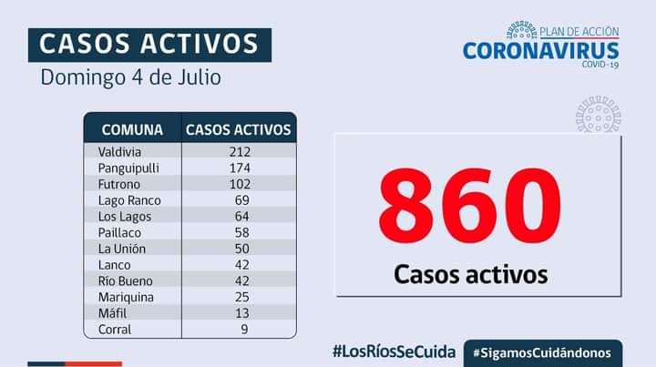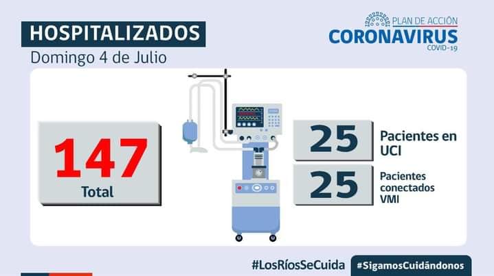 A la fecha en Los Ríos hay 860 casos activos y 147 personas hospitalizadas, de las cuales 25 están conectadas a ventilación mecánica 🚑
