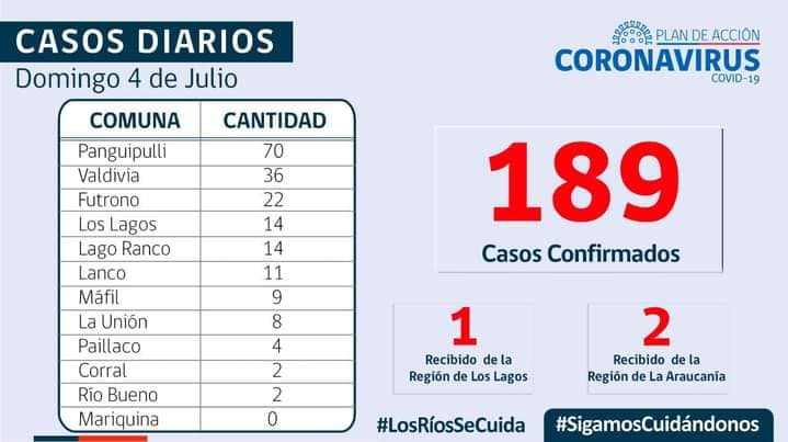 Máfil con 9 casos nuevos para Covid-19 , 147 personas Hospitalizadas en los Rios.