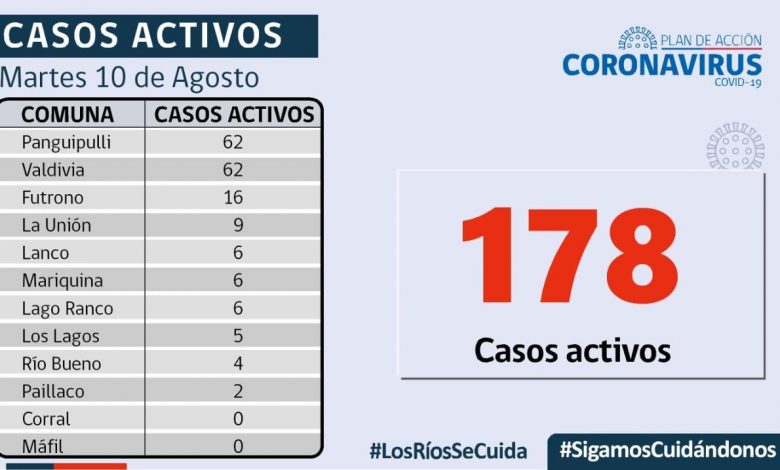 A la fecha en Los Ríos hay 178 casos activos y 55 personas hospitalizadas, de las cuales 9 están conectadas a ventilación mecánica 🚑