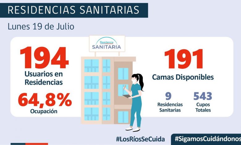 Respecto a las Residencias Sanitarias, a la fecha, 194 personas están haciendo uso de estos espacios de aislamiento, lo que representa un porcentaje de 64,8% de camas ocupadas. Al día de hoy, quedan 191 camas disponibles en estos espacios de aislamiento.