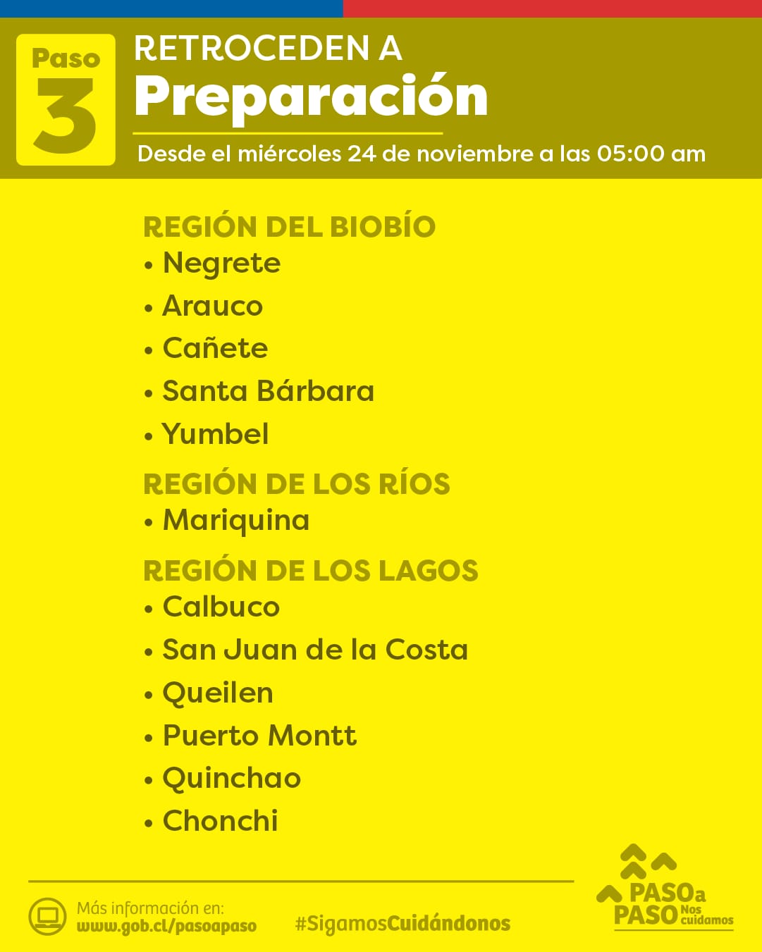 #Pautalosrios.cl retroceden a preparacion del paso a paso la comuna de Mariquina desde el Miercoles 24 de Noviembre a las 05:00