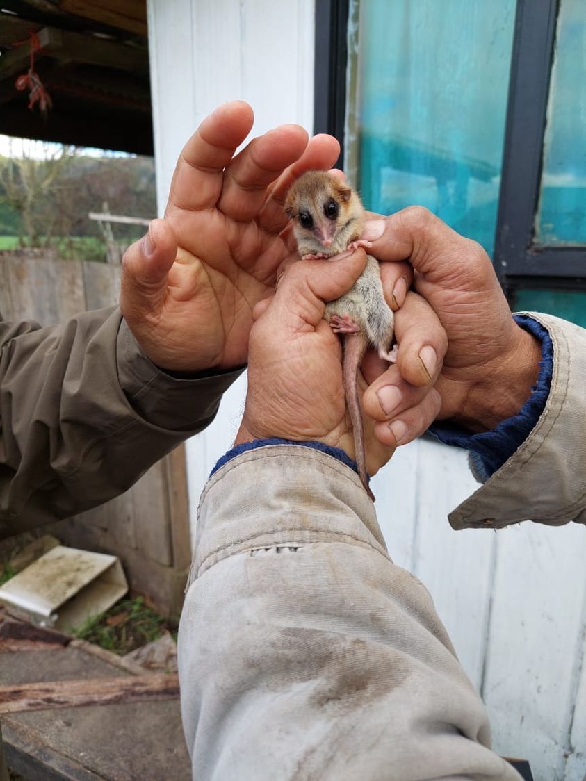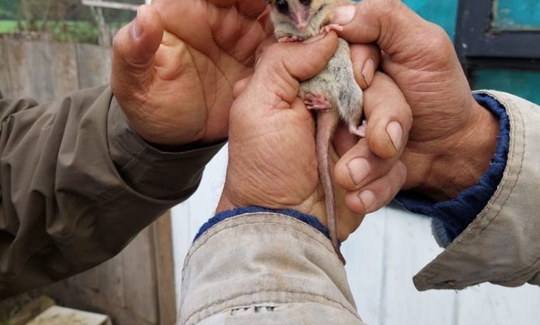 Ejemplar marsupial nativo, conocido como "monito de monte" el cual fue hallado en fundo Cudaco.