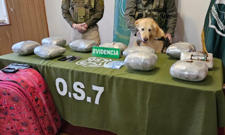 Más de 13 kilos de marihuana y cocaína incautó Carabineros del OS7 Valdivia, a una mujer de nacionalidad colombiana que viajaba en bus con destino a Puerto Montt proveniente de Santiago.