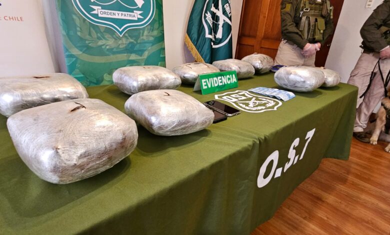 Por su parte, el Jefe de Zona (s) de Carabineros Los Ríos, Coronel Juan González, detalló que en total se incautaron 12 Kilos 312 gramos de marihuana elaborada y 1 Kilo 363 gramos clorhidrato de cocaína, cuantificable en 27.350 dosis, valoradas en cerca de 212 millones de pesos.