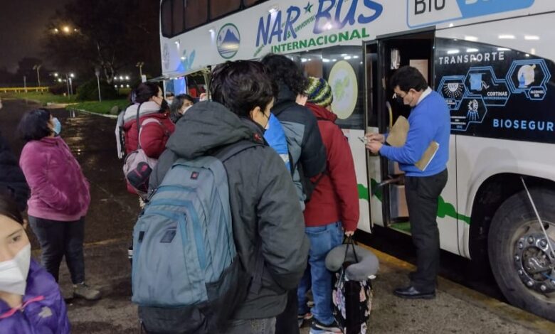 cama de la empresa Narbus con destino final en Santiago, llegaron este martes a eso de las