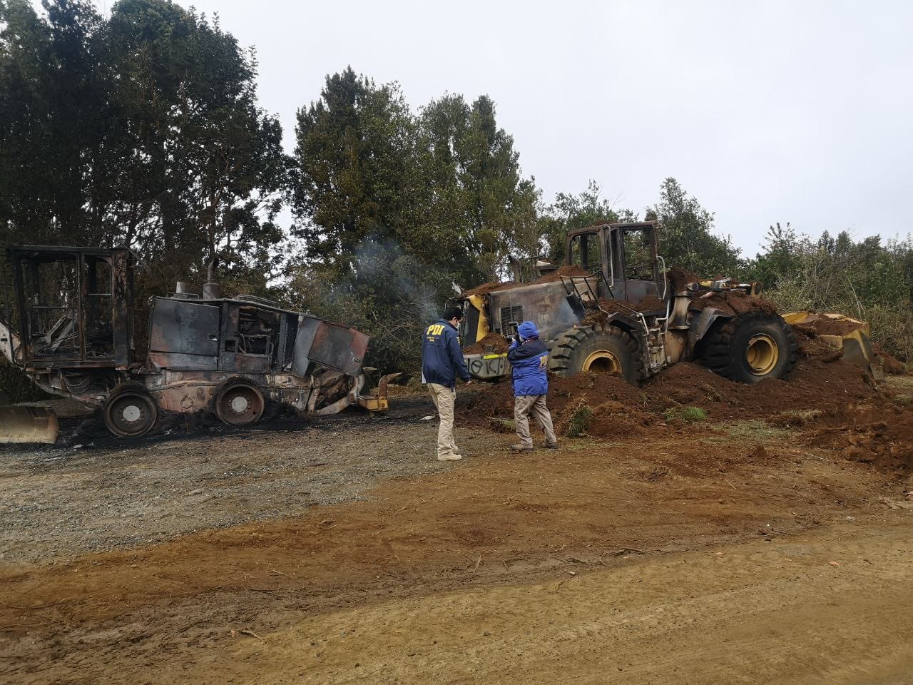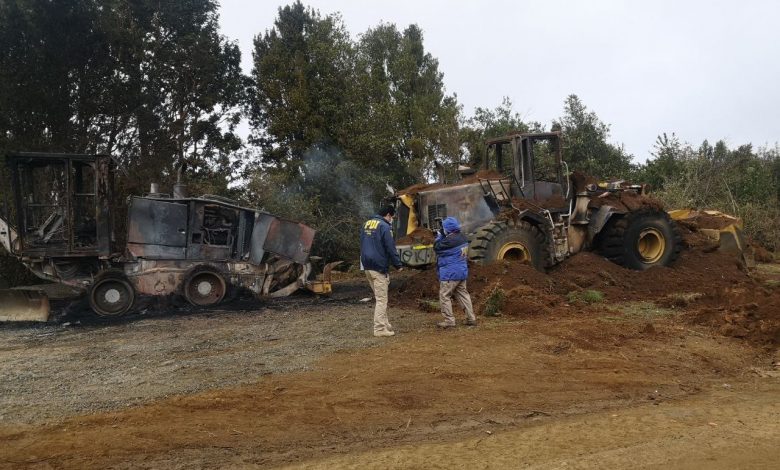 Ministerio Público investiga ataque incendiario que deja maquinaria y camiones quemada en sector de Curiñanco.