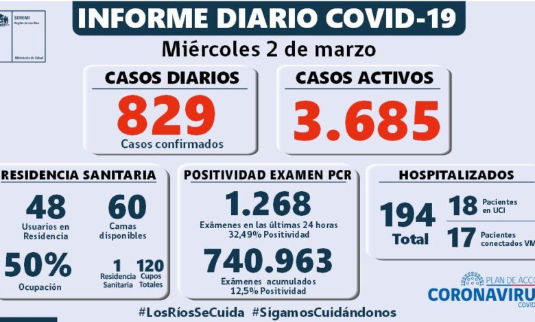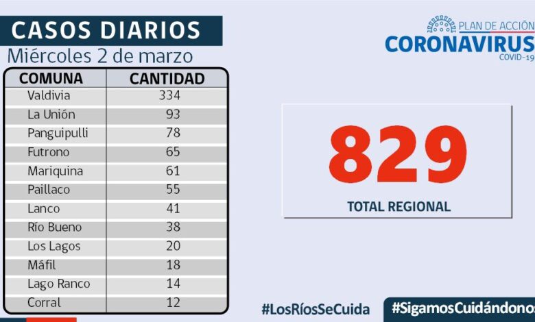 SEREMI DE SALUD INFORMÓ 829 NUEVOS CASOS DE COVID-19 EN LOS RÍOS