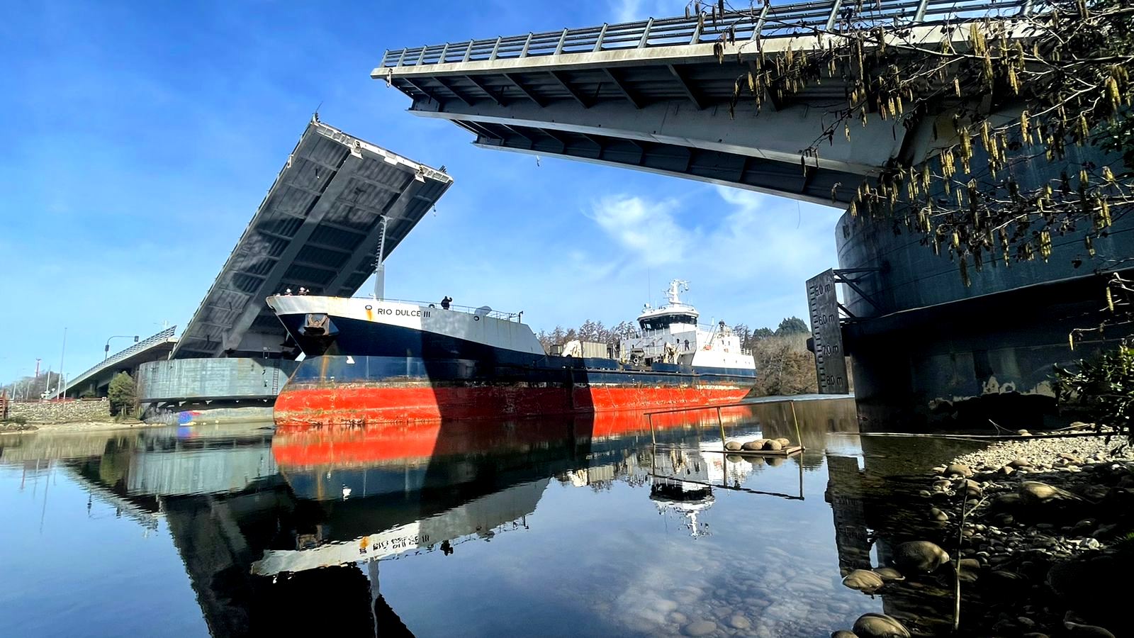 Operación se realizó en tiempo de 3 horas y 15 minutos y consideró el recorrido fluvial de la embarcación Río Dulce III. Basculamiento pudo completarse luego del ajuste en uno de los cilindros del sistema de levante.