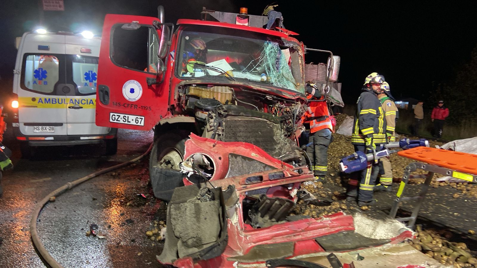 Y es que un fuerte choque entre dos camiones ocurrió la noche de este lunes en la ruta que une Valdivia y Mariquina.