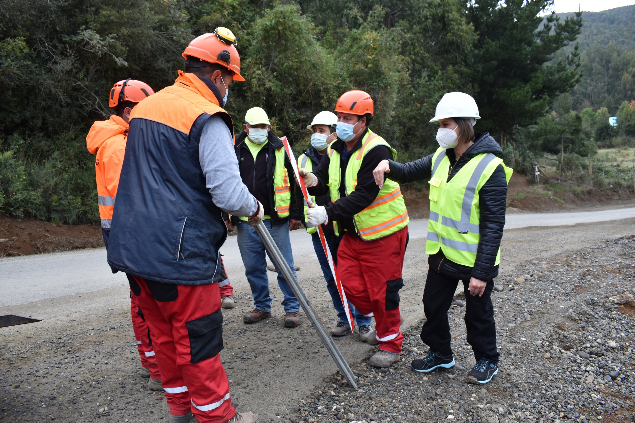 Seremi de Obras Públicas, Nuvia Peralta recorrió el camino junto a personal de la Dirección de Vialidad, para coordinar instalación. Vecinos que viven a lo largo de la vía, también definieron puntos donde se requiere mayor señalización.