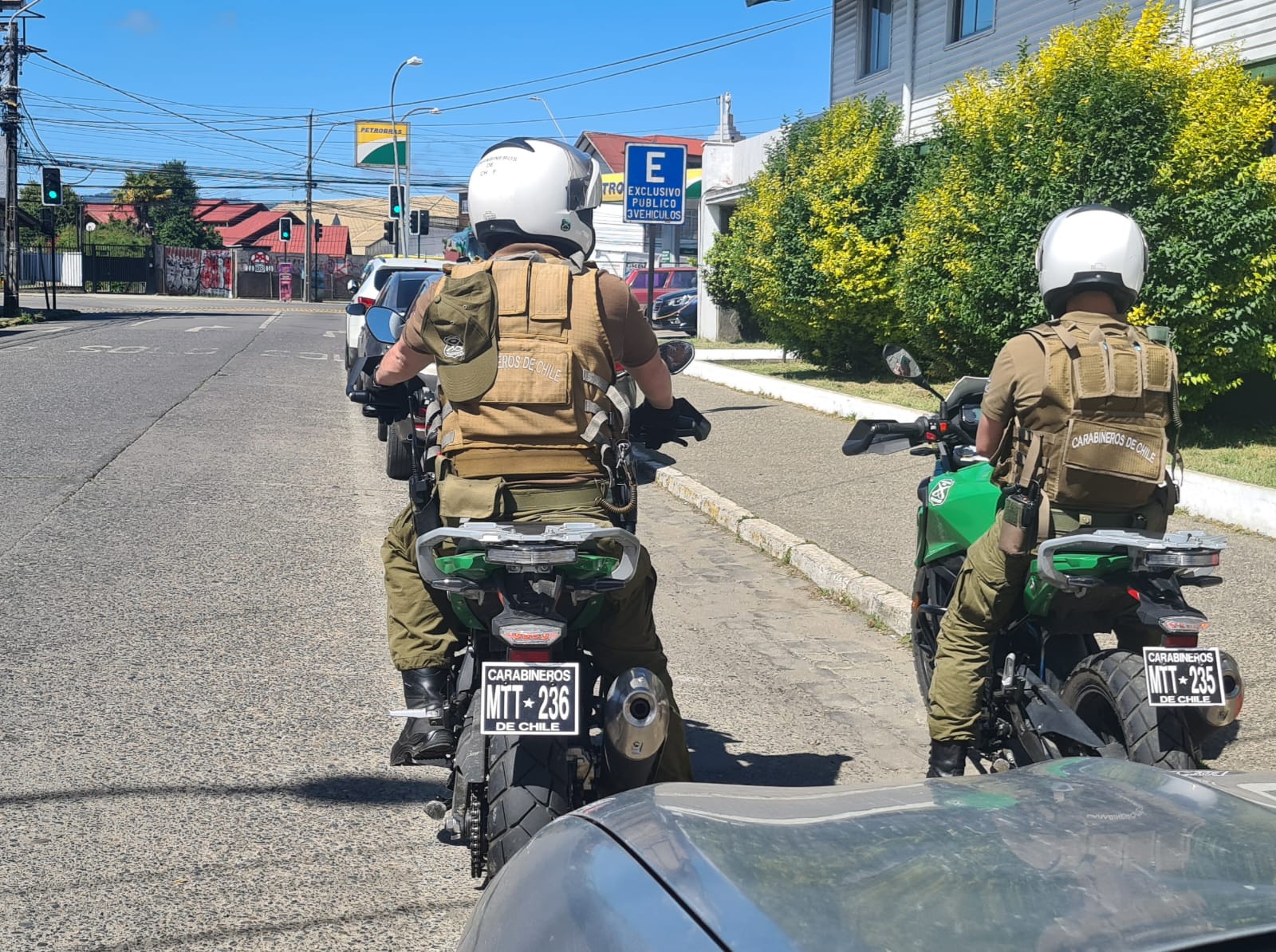 Breves Policial : Tras persecución, en calle Gral Yáñez,Carabineros motoristas de la 1ªComisaría detuvo a los 2 ocupantes de que portaban 1 arma de fuego, 1 cargador con 1 cartucho a fogueo sin percutir en su interior y 2 cuchillos, quienes previamente habían amenazado a un conductor.