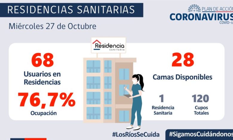 Respecto a las Residencias Sanitarias, a la fecha, 68 personas están haciendo uso de este espacio de aislamiento, lo que representa un porcentaje de 76,7% de camas ocupadas. Al día de hoy, quedan 28 camas disponibles.