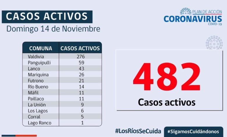 A la fecha en Los Ríos hay 482 casos activos, de los cuales 276 corresponden a la comuna de Valdivia y 59 a la comuna de Panguipulli.