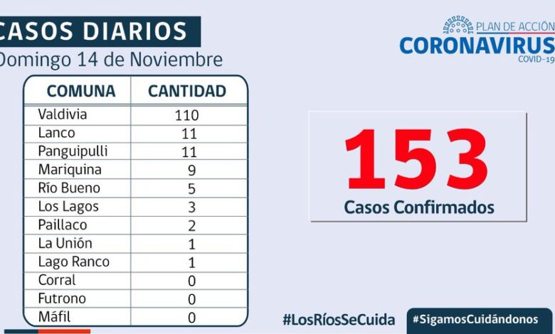 Nueva oleada de contagios diarios en los Ríos 153 casos nuevos hoy Domingo.