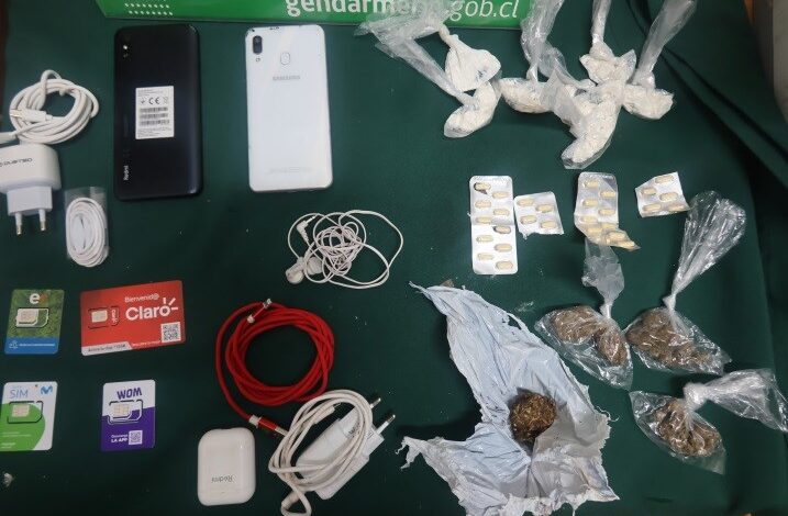 cuatro chips de telefonía móvil, 11 envoltorios con sustancias ilícitas y 29 comprimidos.