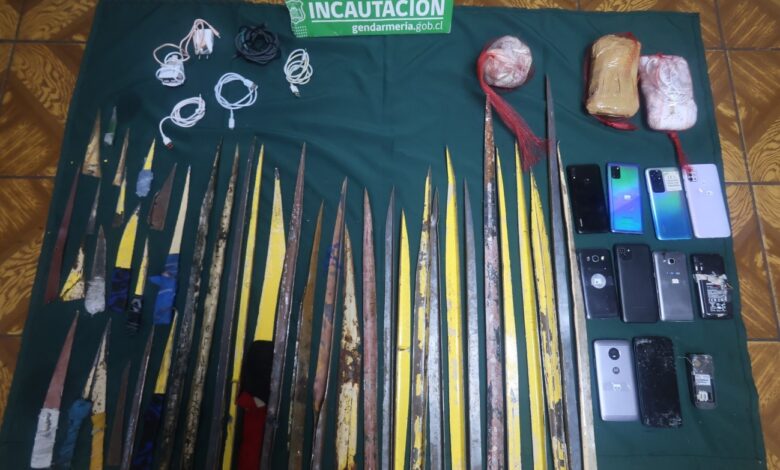 un total de 46 armas blancas, 24 teléfonos celulares, 16 cargadores de celular, envoltorios con