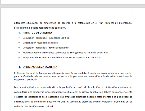 ONEMI Los Ríos Declara Alerta Temprana Preventiva Comunas de Panguipulli – Futrono – Rios Bueno – Lago
