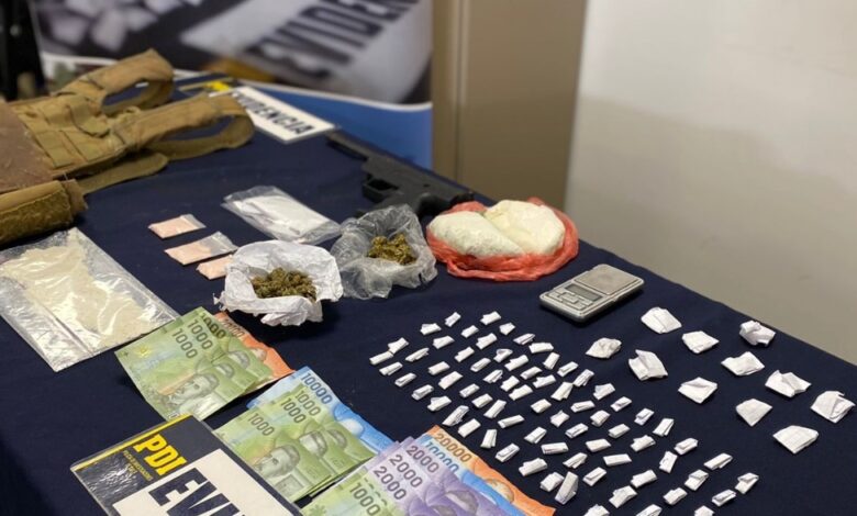 Detectives de la Brigada Antinarcóticos y Contra el Crimen Organizado, detuvieron a una pareja en población Guacamayo de la ciudad de Valdivia e incautaron drogas, dinero en efectivo, un arma de aire comprimido y un chaleco táctico en dos domicilios del sector antes señalado.