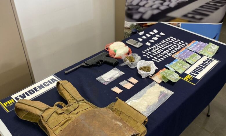 Lo incautado, corresponde a 426.42 gramos de Cocaína Base, 41.72 gramos de Cannabis Sativa, y 18.89 gramos de Ketamina, $362.000 en dinero efectivo, un chaleco táctico con placas de protección artesanales, y 1 pistola de aire comprimido.