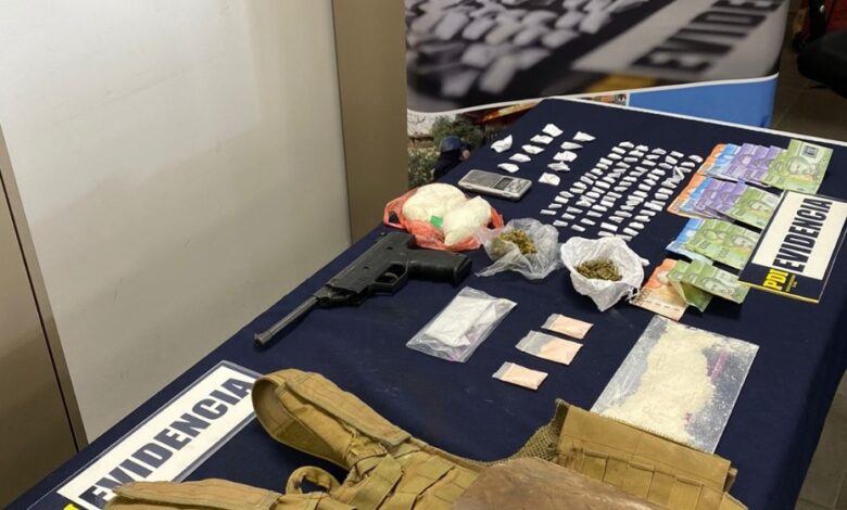 Incautaron drogas, dinero en efectivo, un arma de aire comprimido y un chaleco táctico en dos domicilios del sector antes señalado.