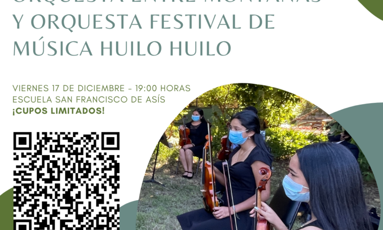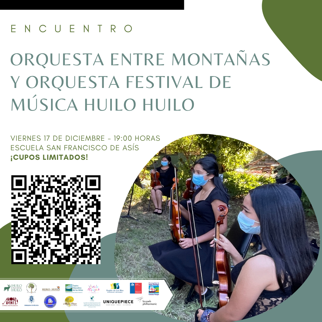 Este viernes 17 de diciembre a las 19:00 horas se presentarán en el colegio San Francisco de Asís la Orquesta Entre Montañas y la Orquesta del Festival de Música de Huilo Huilo, esto en el marco del Festival De Música de Huilo Huilo, el que ofrece capacitación a jóvenes músicos de nuestro país bajo la tutela de músicos de excelencia de la Filarmónica de Bruselas.