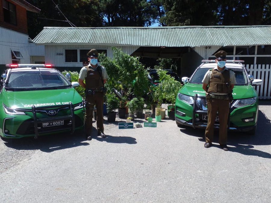 OS7 de Carabineros de Valdivia incautó 22 plantas de marihuana en Panguipulli