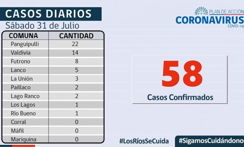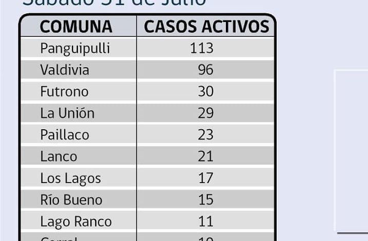 Panguipulli con 22 casos activos para Covid-19, 58 casos confirmados hoy Sábado.