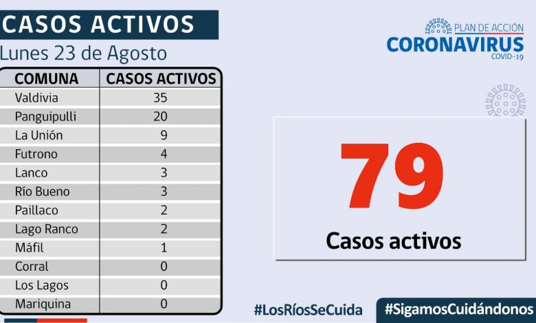 A la fecha en los Ríos hay 79 casos activos, de los cuales 35 corresponden a Valdivia.