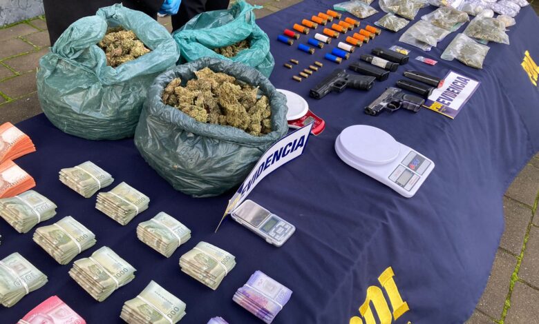 PDI de Valdivia desbarató banda criminal dedicada al narcotráfico en Los Ríos: 11 detenidos e incautación por más de 600 millones de pesos