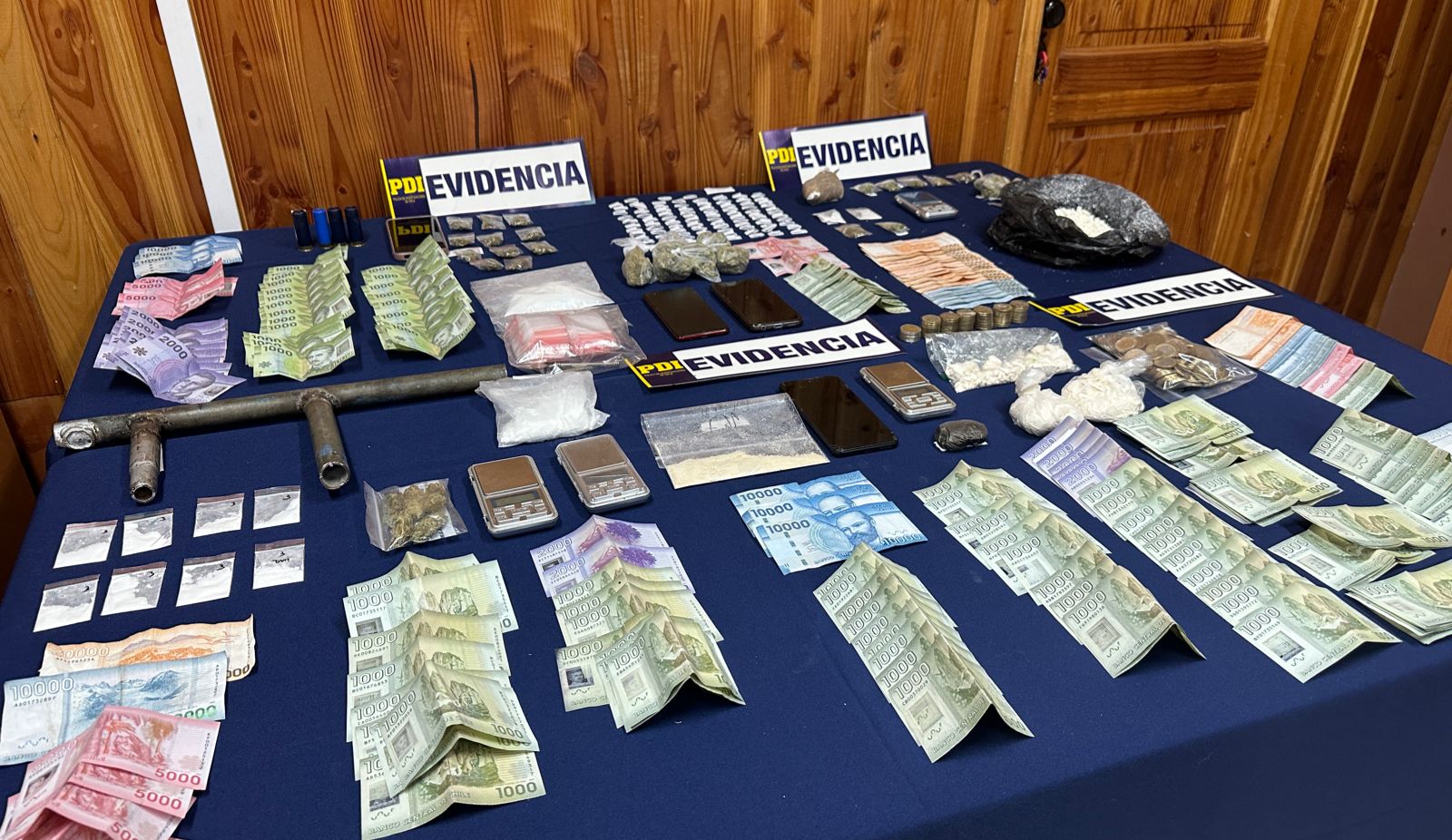 Respecto a lo incautado, corresponde a 7.597 dosis de distintas drogas, un arma de fuego de fabricación artesanal, cartuchos de distinto calibre y dinero en efectivo producto de la venta de droga, además de elementos de interés Criminalistico como balanzas digitales entre otros.