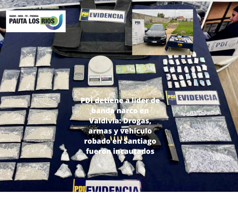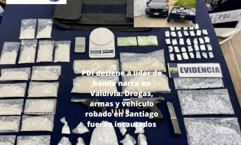 Detectives de la Brigada Antinarcóticos y Contra el Crimen Organizado (BRIANCO) de la PDI Valdivia, tras una investigación conjunta con la Fiscalía Local de esta ciudad, lograron detener al líder de una banda criminal dedicada al tráfico de drogas en la capital regional, quien mantenía una orden de aprehensión pendiente por los delitos de Homicidio Frustrado, Posesión o Tenencia de Armas, Municiones Prohibidas y Trafico de drogas en pequeñas cantidades; desbaratando tres puntos de venta de sustancias ilícitas en distintas poblaciones de Valdivia e incautando diversas drogas, armas, municiones y un vehículo de alta gama que había sido robado en un portonazo en la Región Metropolitana.