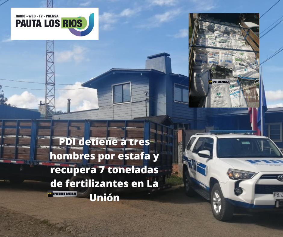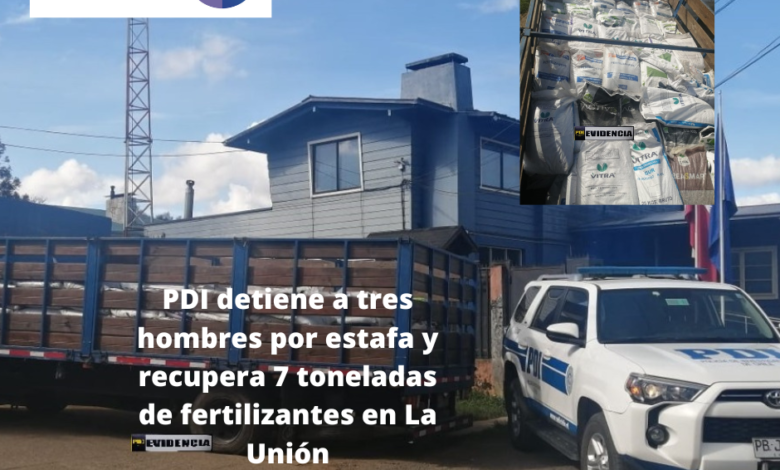 Detectives de la Brigada de Investigación Criminal (BICRIM) de La Unión, mediante diversas diligencias de análisis criminal, en base a una denuncia realizada en la ciudad de Longaví por el delito de estafa y otras defraudaciones, lograron detener a tres hombres mayores de edad y recuperar más de 7 mil kilos de fertilizantes que habrían sido comprado con documentación irregular.