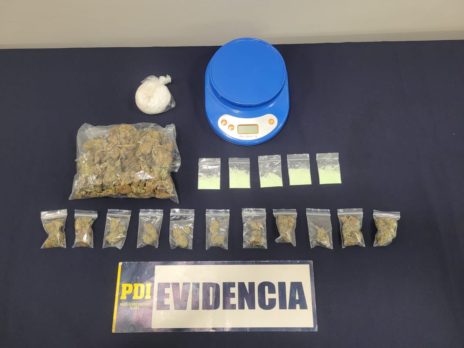 El total de lo incautado corresponde a 1315 dosis de drogas, lo cual está avaluado en alrededor de un millón 900 mil pesos aproximadamente.